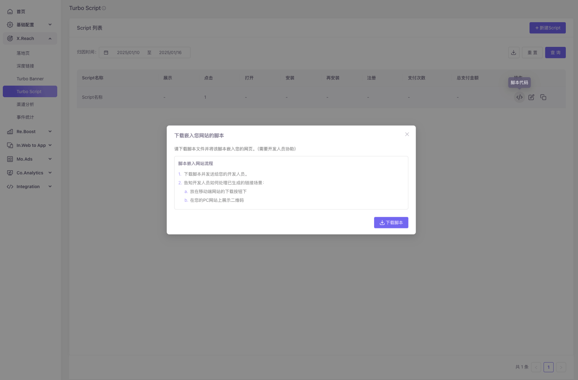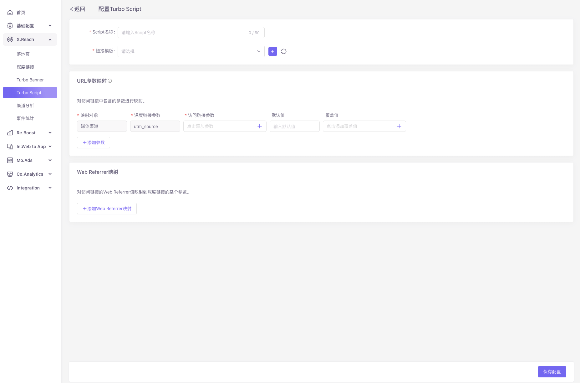 - Dashboard后台Turbo Script中新建Script、配置对应信息